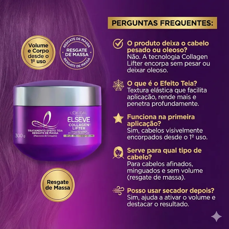 ✔ Cabelos mais volumosos desde a primeira lavagem